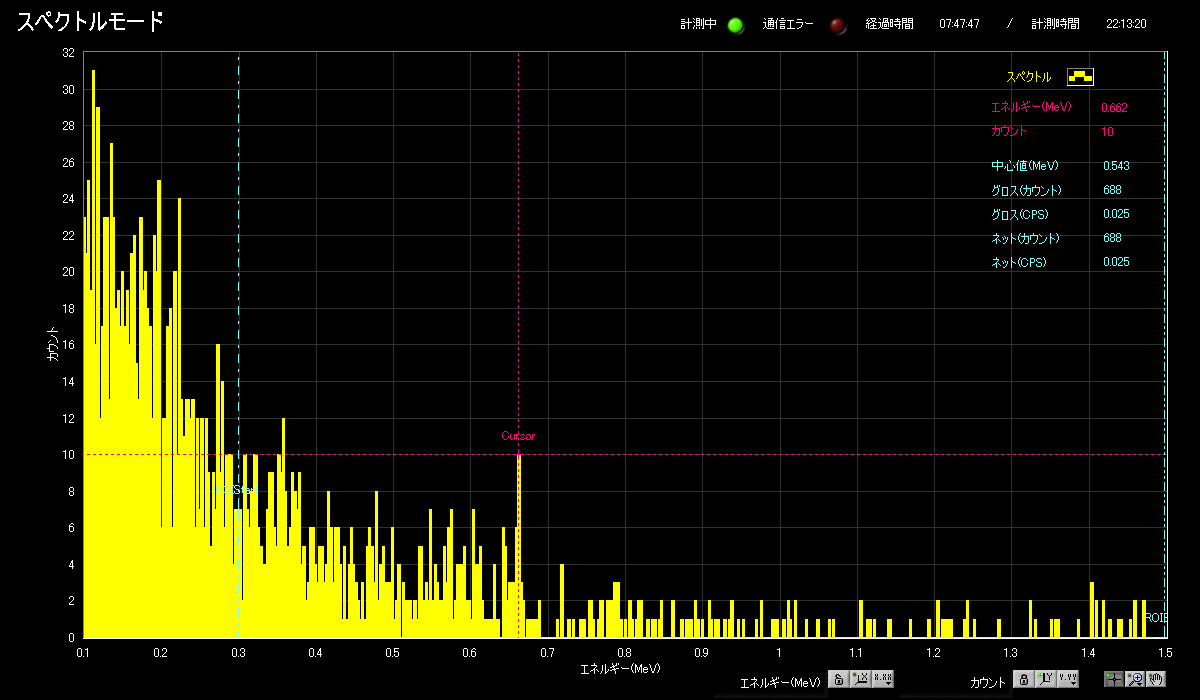 今日までで、福島県産リンゴと群馬県産原木しいたけについては、コンビニで1度買っ て測定しただけでセシウムが検出されています。前にも書いたよ うにこの他に関東産の野菜等をいくつか測定していますが、それらでは有意な 検出にはいたっていません。つまりは、今までのところ、リンゴとしいたけ以 外で私が測ってみたものは関東産でも暫定規制値よりかなり低い汚染度である、ということです。