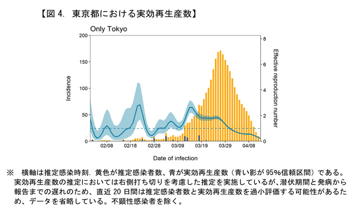 資料に「【図 4.東京都における実効再生産数】」なるグラフがあります。