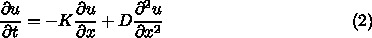 K は一次の係数で、これは普通の拡散方程式や熱伝導方程式では 0 である。
