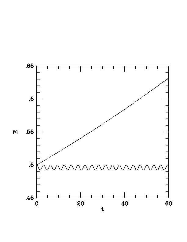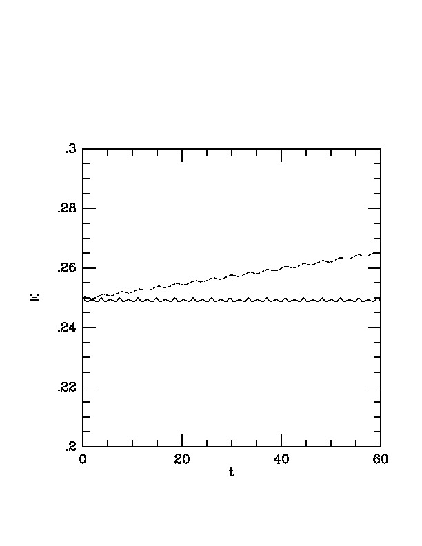 るときに、大抵の積分法では周期解から一方的にずれていく、つまり、保存量