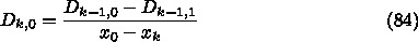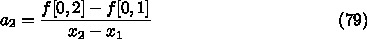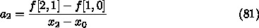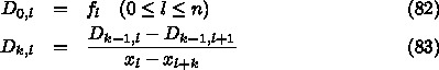 と、こんな風に差商を作っておくと、これから多項式の係数を機械的に計算し