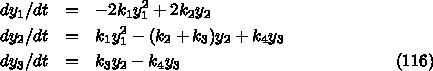 さて、硬い微分方程式とは何かということだが、例えば以下のような化学反応