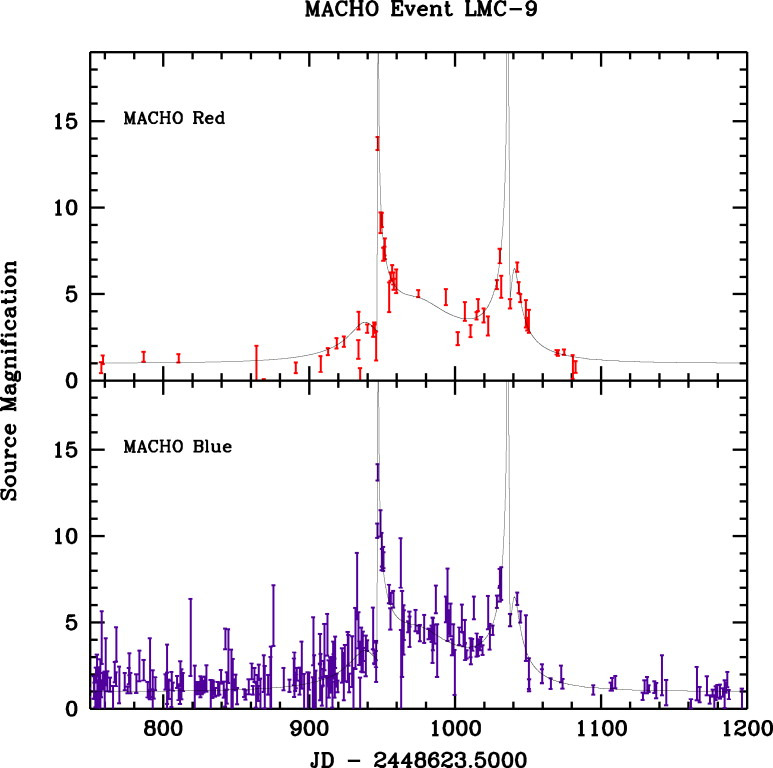 例えば、図 13 は連星重力レンズと推定されたものの観測結果と、それのモデルである。