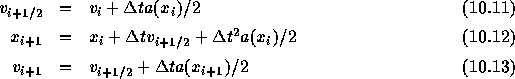 ここまでは、「相互作用をいつ、どうやって計算するか」という話をしてきた。 しかし、実際に数値解を求めるには求まった重力加速度を使って各粒子の軌道 を積分する必要がある。以下、その方法について簡単に述べる。