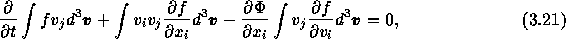 れるが、これをまず速度空間全体で積分してみる。と、まず第3項は発散定理