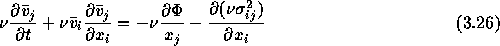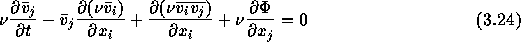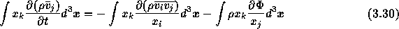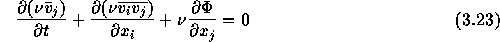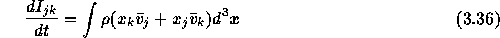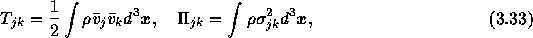 これは、流体の場合のオイラー方程式(運動方程式)と大体同じ格好になって いる。左辺は平均の流れに沿ってみた平均速度の Lagrange 微分であり、右辺 第一項はポテンシャルから力である。