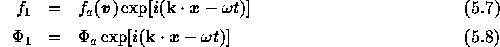 と少し式が簡単になる。まず、流体の場合と同じような平面波型の解を考えて みよう。