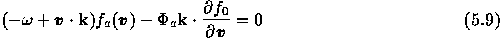 このことをいいかえると、上のような「自然な」解があるにもかかわらず、 モード解析をするとvan Kampen mode のような singular なものが出てくるの は、モード解析の仮定として位相速度が粒子の速度に寄らないようなものを考 えたからであるともいえる。