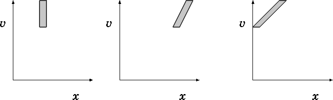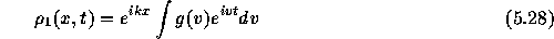 このような減衰が起きるのは、初期条件が非常に特別なものであるためである ということに注意してほしい。つまり、速度ごとに波の位相速度が違うのに、 初期条件としてその空間位相がすべてそろったものを考えたわけである。そう すると、時間がたてば位相はずれていくので速度方向に積分して見た波の振幅 は小さくなってくことになる。これは、速度方向の「波数」に時間が生で入っ てくるためである。