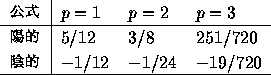 の係数を、いくつかの p の場合について下の表にまとめておく(実際の誤差