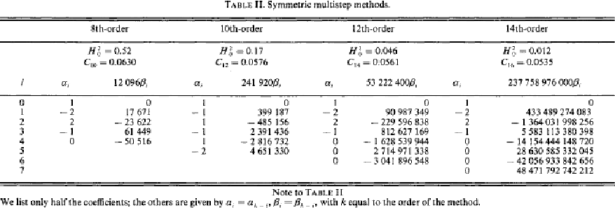 このような公式は、 1970 年代から知られていたが、注目されるようになった のは 1990 年代に入ってからである。特にトロント大の Quinlan, Tremaine らが14次までの対称型公式を導いた。表12.1にその値を示してお く。