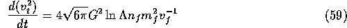 さて、通常「2体緩和のタイムスケール」という時には何を指してい るかというと、この等分配のタイムスケールのことではないのが普通である。 が、時と場合によっていろんなものが出てくるが、まあ同じようなものである。 普通に使われるのは、