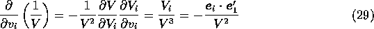 の内積の分をつけてやれば元の単位ベクトル同士の内積になる。つまり、