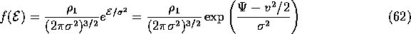 球対称としたので、運動の積分はエネルギーEと全角運動量Jの2つだ けということになる。さらに熱平衡を仮定すると、速度分布がマックス ウェル分布でないといけないことになる。さて、ここで、上のジーンズ の定理から直ちに導かれることは、系全体の分布を記述する分布関数が エネルギーだけに依存し、これがマックスウェル分布