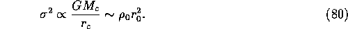 これに対し、恒星系に対応する場合では、密度が上がるとタイムスケー ルが短くなる。この時は、密度の高い「コア」が出来、それがどんどん収縮を 続けるということになる。これに関する詳細な解析は Lynden-Bell & Eggleton [LE80] に与えられているので、以下考え方だけを示 す。