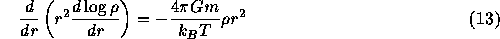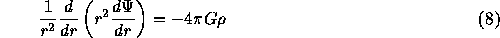 なお、熱平衡であるということは、実は自己重力的な流体(衝突項が大きいも の)と自己重力多体系で分布関数が同じであるということである。念のため、 以下、自己重力流体について方程式を導いておく。 静水圧平衡の式は