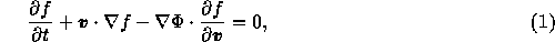 これは、通常のボルツマン方程式と同じであるが、特徴的なのは衝突項がない ことである。後で説明するが、自己重力多体系の場合、粒子数無限大の極限で は重力場が滑らかになって衝突項が消える。