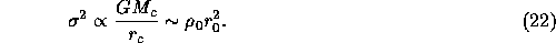 これに対し、恒星系に対応する場合では、密度が上がるとタイムスケー ルが短くなる。この時は、密度の高い「コア」が出来、それがどんどん収縮を 続けるということになる。これに関する詳細な解析は Lynden-Bell & Eggleton [LE80] に与えられているので、以下考え方だけを示 す。