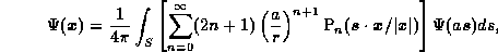 基本的なアイディアは、球面調和関数の展開係数をデータとして使う代わりに、 球面でのポテンシャルの値そのものを使おうというものである。半径 a の球の 中の粒子が外に及ぼすポテンシャルは、球の表面でのポテンシャルの値がわかっ ていればラプ ラス方程式の境界値問題を解けば与えられる。解はポア ソンの公式を使って以下のように書ける