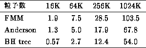 FMMはAnderson 法の場合でもツリー法に比べてはるかに複雑である。それ だけの努力を必要とするにもかかわらず、現在のところ計算精度が同程度の場 合に FMM のほうが速いという報告はないということは心に留めておくべきで あろう。
