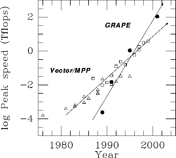 Figure 4: The evolution of GRAPE and general-purpose parallel