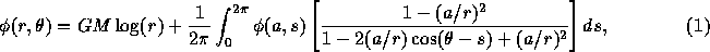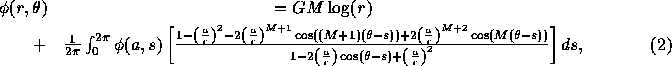 Anderson [1] proposed an alternative formulation of FMM which is based on Poisson's formula. In two dimensions, the gravitational potential outside a disk of radius a containing particles is expressed as