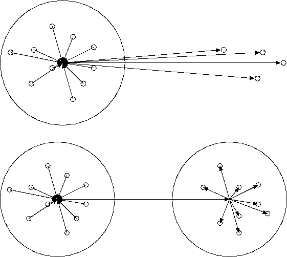 Figure 1: Approximations in tree (top) and FMM(bottom)