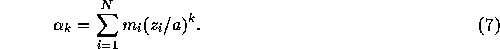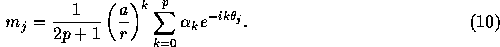 Consider the mass distribution of on a ring of radius r. The multipole expansion coefficients is given by