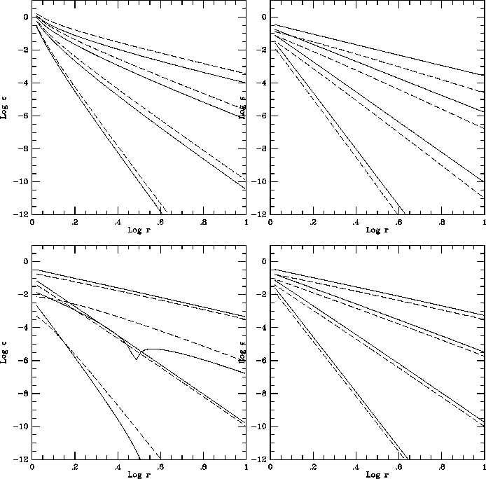 of r. Solid and dashed curves denote the pseudoparticle method and