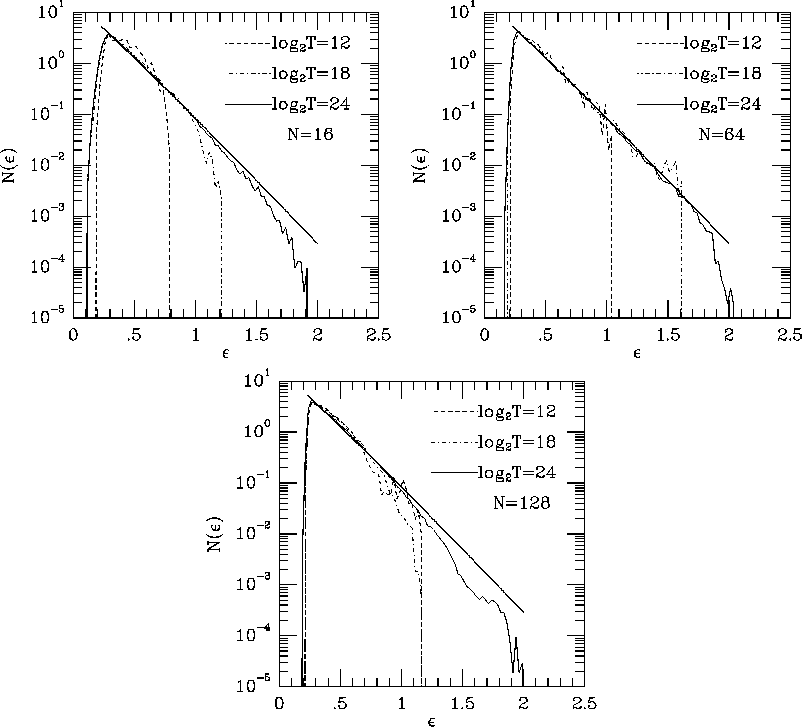short-dashed curves are the results for N=16, 64 and 256, respectively.