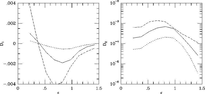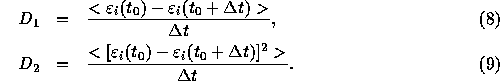 These quantities correspond to the coefficients of the first and second-order terms in the Fokker-Planck equation for the distribution function, and have been used as the measure of the relaxation in many studies (see, e.g., Hernquist and Barnes,[1] Hernquist et al. [2]), for three-dimensional systems. However, to our knowledge this measure has not been used for the study of the sheet model.