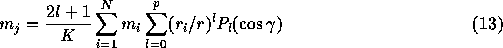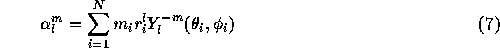 形式的には、するべきことは実粒子分布を多重極展開し、その係数を逆球面調和関 数展開して仮想粒子の質量に戻すということである。仮想粒子の数が無限に多 い連続極限では、形式的には逆変換の式は極めて簡単で