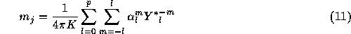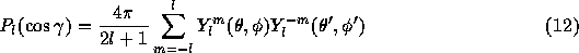 さて、これで必要な変換は与えられたが、いちいち係数を求めてからそれをも う一回変換するのは美しくない。実粒子の質量から直接仮想粒子の質量を求め ることを考えてみると、これは i, l, m の3重の総和になって一見計算 が大変なような気がする。しかし、実は三角関数と同様に球面調和関数にも加 法定理