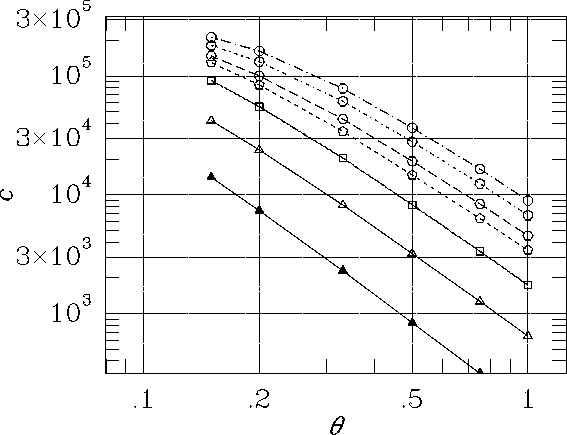GRAPE を使う場合の計算コードも、従来のものを少し手直しするだけで構成で きる。GRAPE を使う場合の基本的な考えは、ホストでツリーをたどっていくのをあるグ ループに対して行ない、それで出来た相互作用リストとグループの中の粒子の リストを GRAPE に送って力を計算してもらおうというものであった[7]。このた めに、一粒子あたりの計算量はグループの中の粒子の数の数倍程度増えている。 GRAPE が相対的に高速なので、この部分はあまり問題にならないわけである。 疑似粒子を使った場合でも、このGRAPE を使うために計算量が増えている分は 変わらないので、結局次数を上げてもそれほど計算量が増えないということが 期待できる。