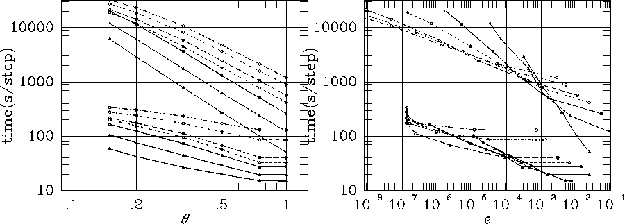用計算機は Alpha 21164 300 MHz (DEC Alphaserver 8400), GRAPE は